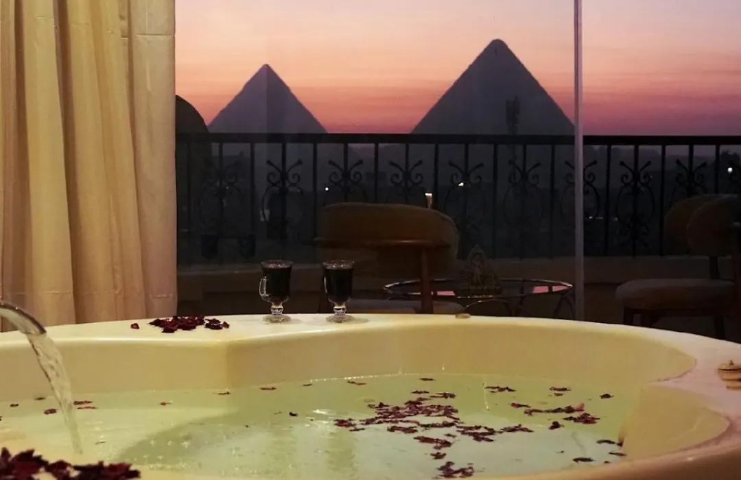 Three Pyramids View & Jacuzzi Bed & Breakfast Cairo features 30 rooms and lies 2.4 km from the ancient wooden Khufu Ship. The bed & breakfast also provides guests with a safety deposit box.